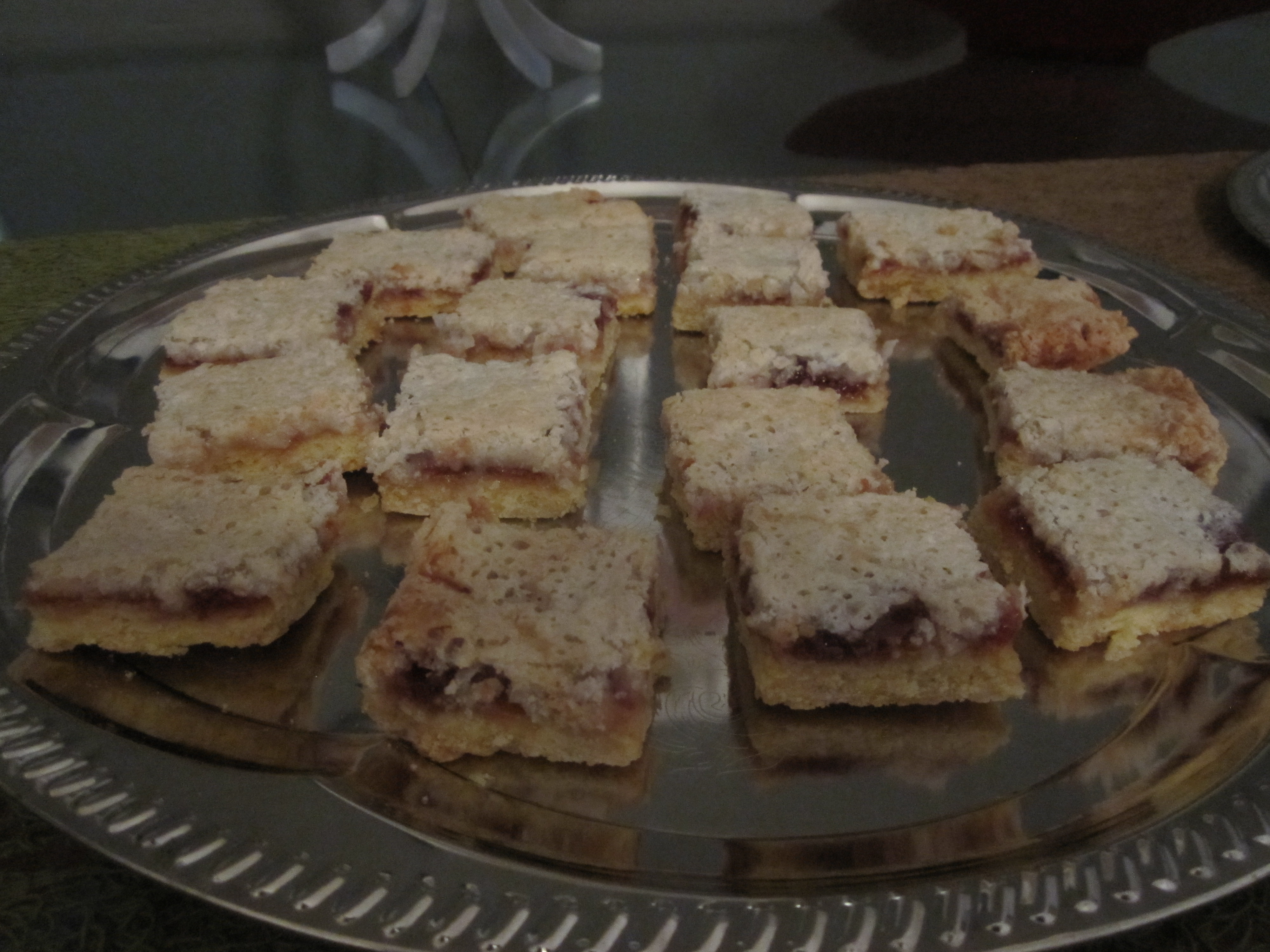 We had brownies! We had blondies! (And that wasn’t just the audience!) We had coconut and jam sandwich bars! Personally, while I thought they were super tasty, they did remind me of an upscale pop tart. (Which is not the worst thing in the world!) Bridget Sweeny was nice enough to make brownies for us, so maybe we can coax her for her recipe….in the meantime; coconut and jam sandwich bars!